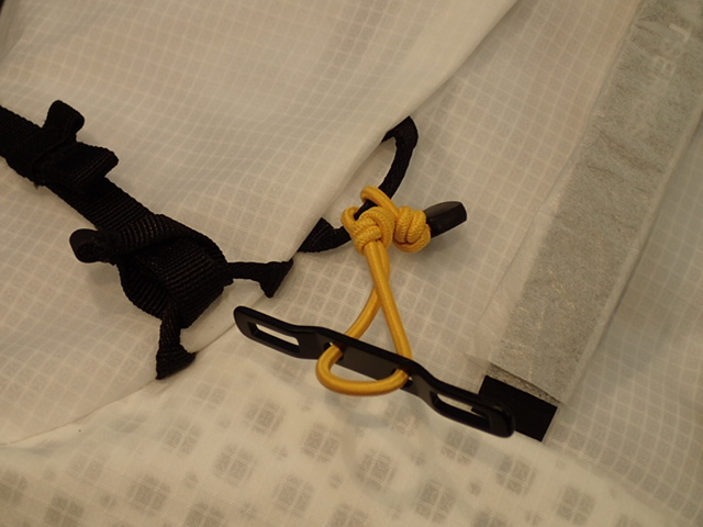 初期設定はサイドコンプレッションテープ(黒)によってバンジーコード(黄)が固定されていますが、