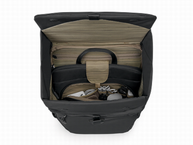 上に開くことで、きれいに折り畳まれた生地が立体的に広がり、荷物の取り出しが非常に楽に行えます。