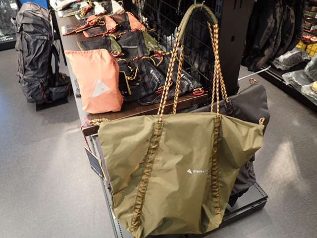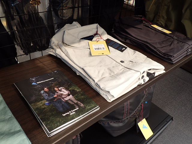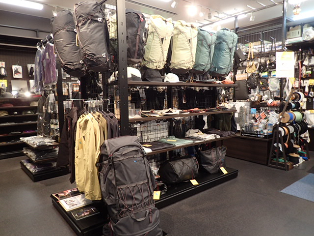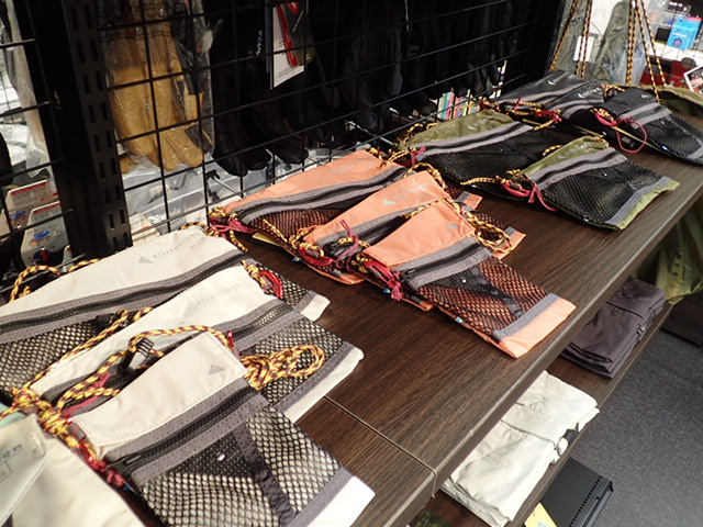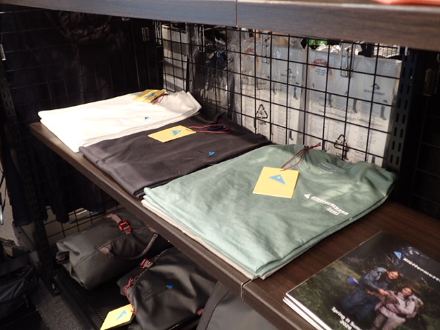 バックパック、バッグ、アパレル等が実際に手取って確認でます。